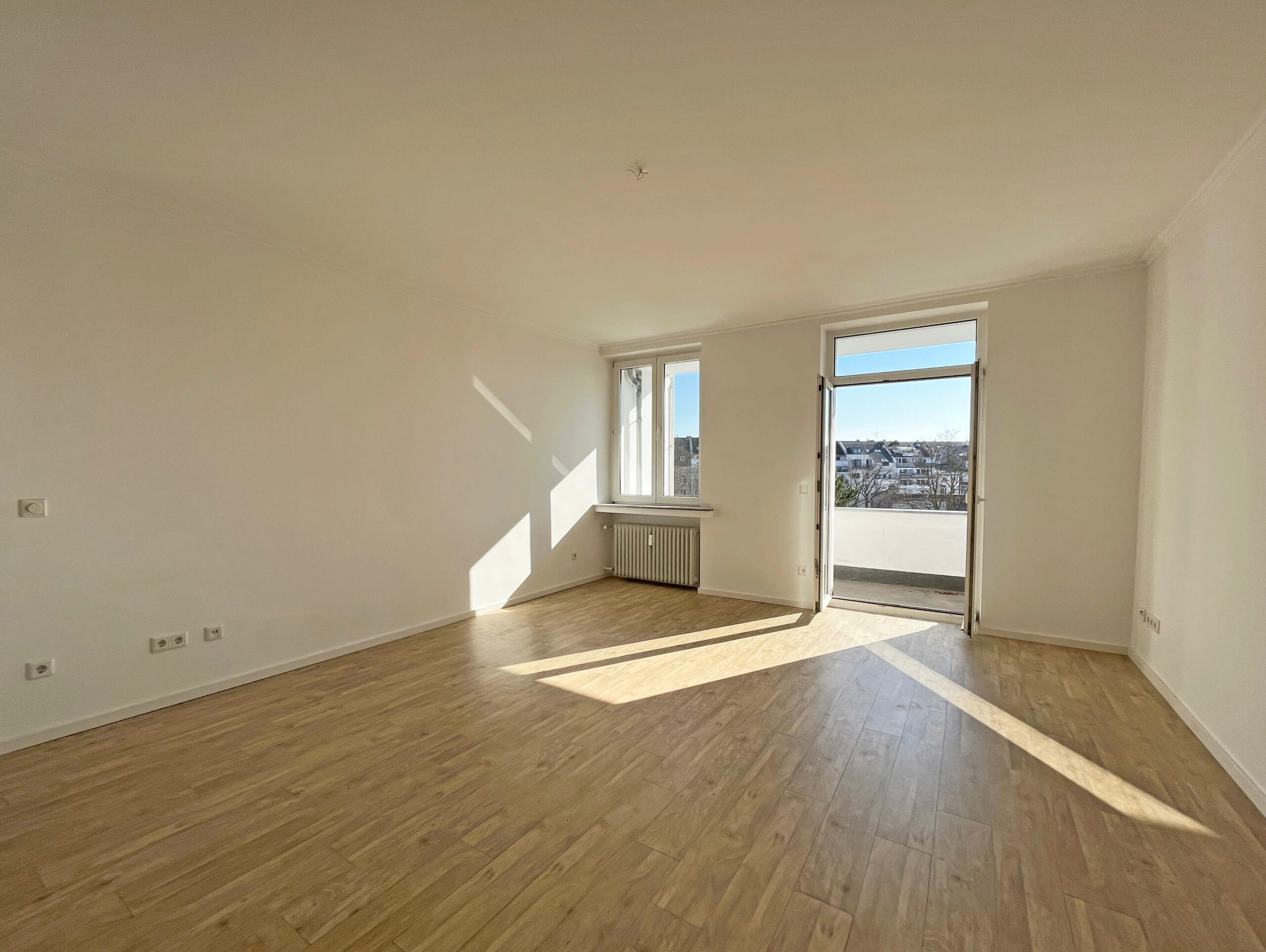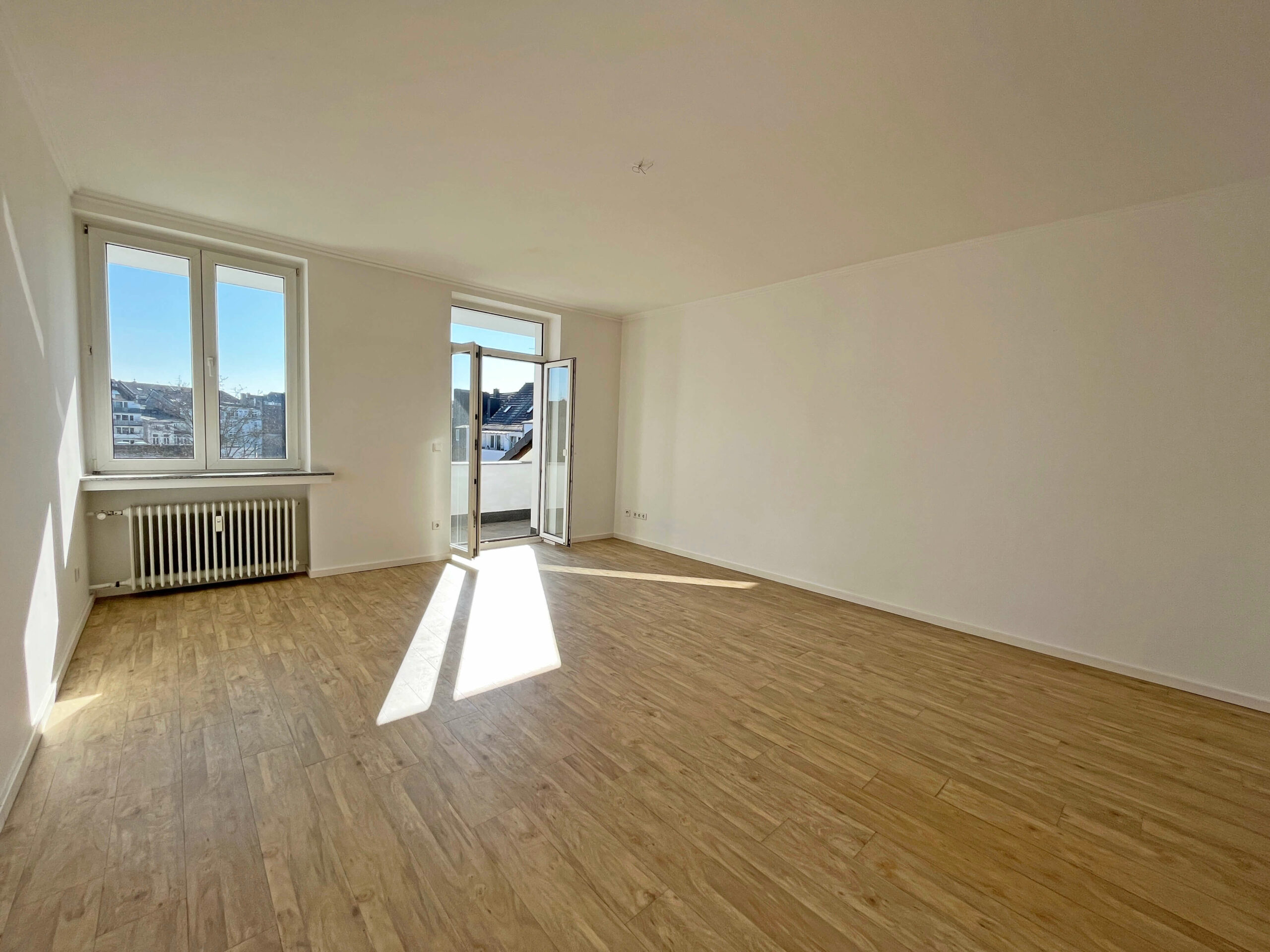 Im Mittelpunkt dieser Wohnung steht der Wohnbereich. Von hier aus gelangen Sie auch auf den Balkon der zum ruhig gelegenen Innenhof mit Blick in das große Karree geht.